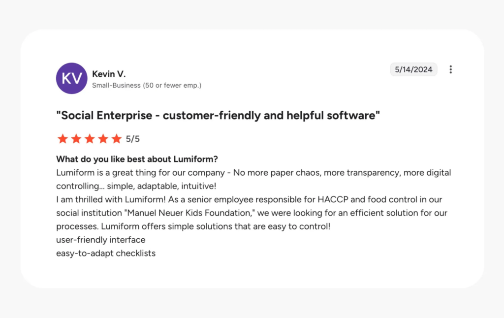 - Lumiform is purpose-built for organizations that conduct inspections, audits, and quality checks, which need accountability and thorough, ongoing documentation.
